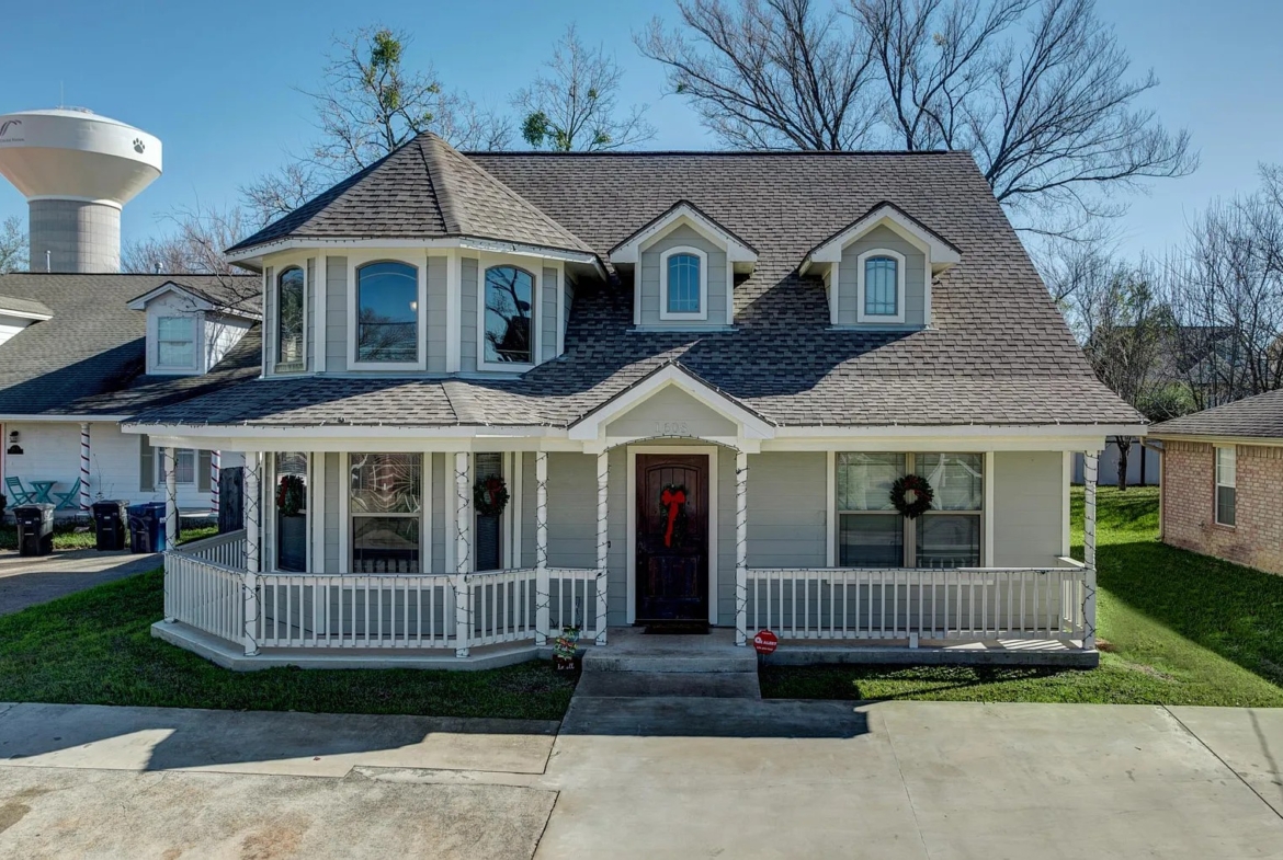 4bed/4bath in the historical district. This house features 17 foot vaulted ceilings with wrap around porch, granite counter tops, all black appliances and a very nice front porch hang out area. Very close to HEB and other shopping areas. One block from campus on shuttle bus route with first drop off and last pickup! Fenced in backyard.